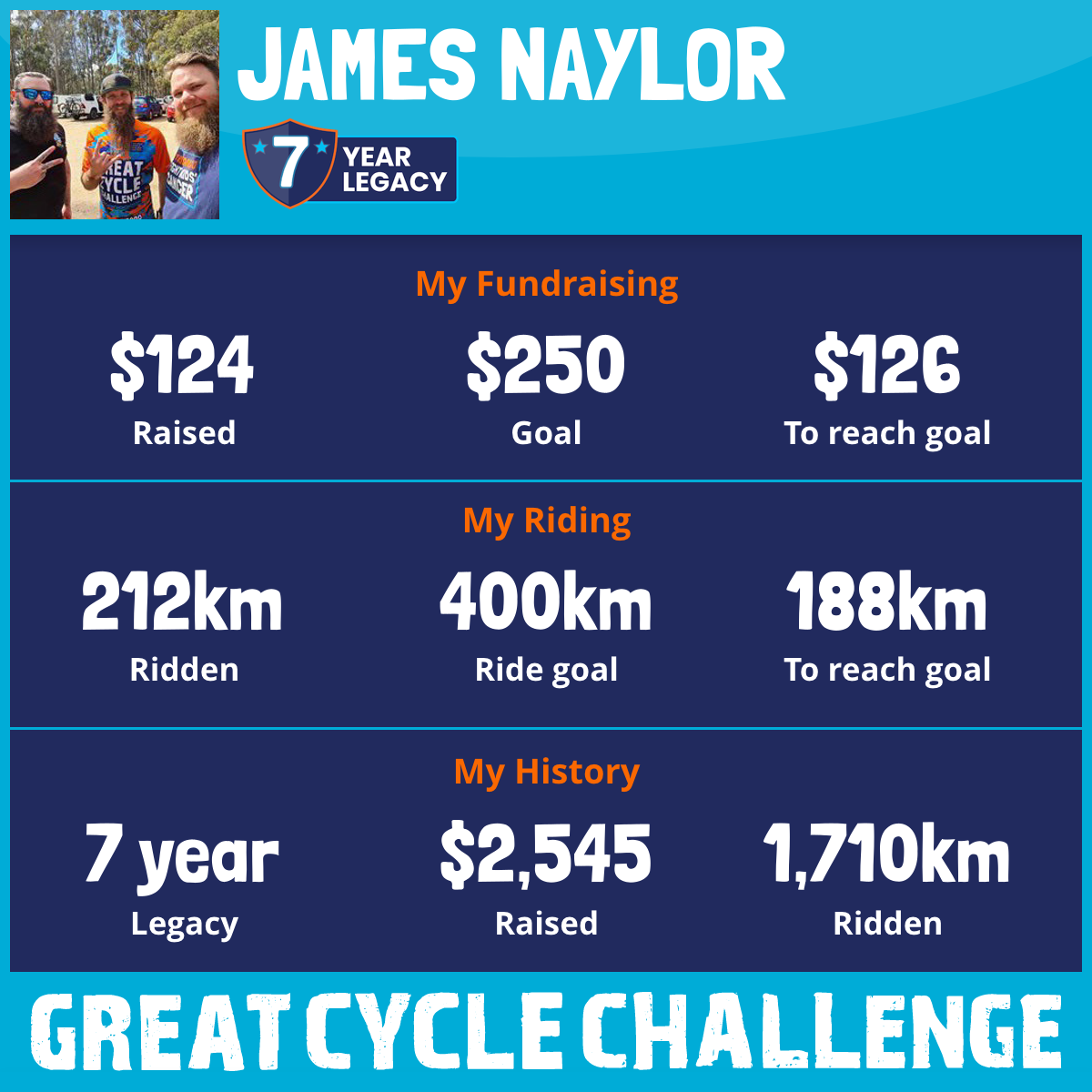 212 km Ridden$124 Raised2026