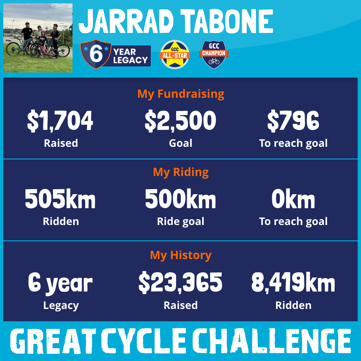 505 km Ridden$1,704 Raised2025