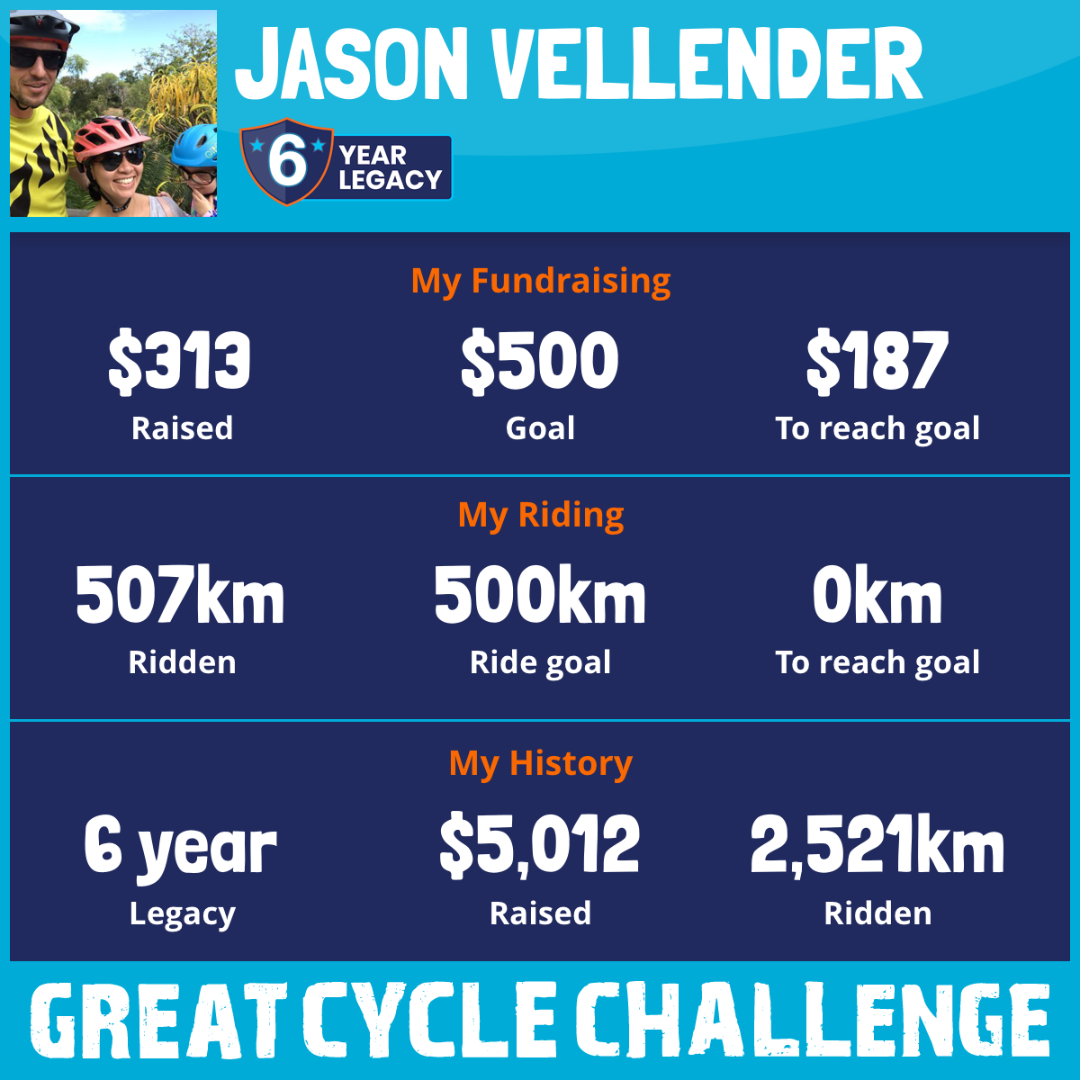 507 km Ridden$313 Raised2025