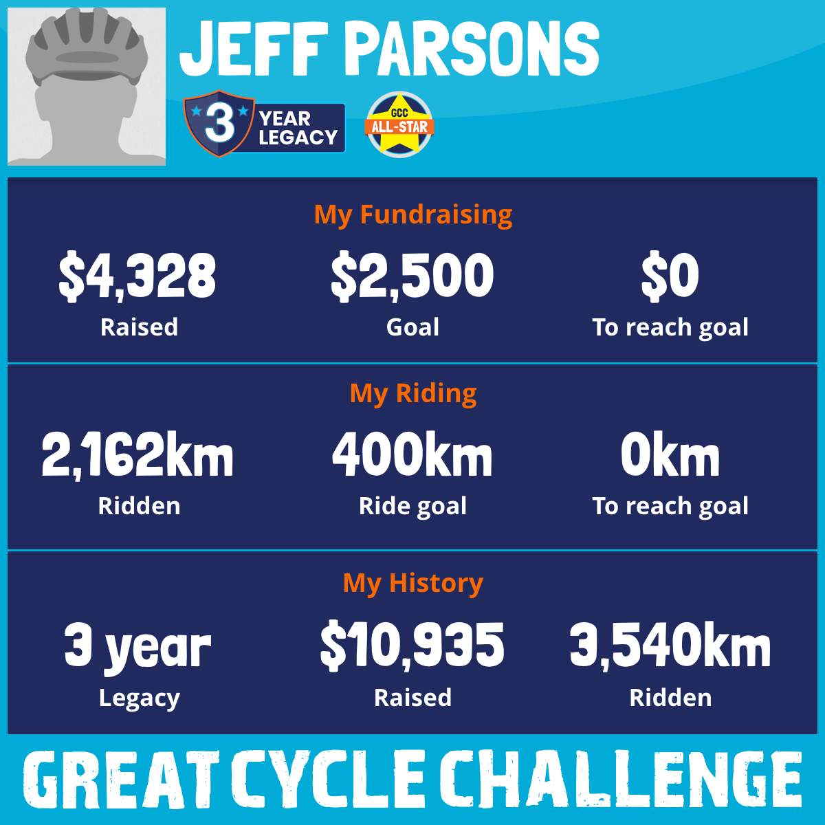 2,162 km Ridden$4,328 Raised2025