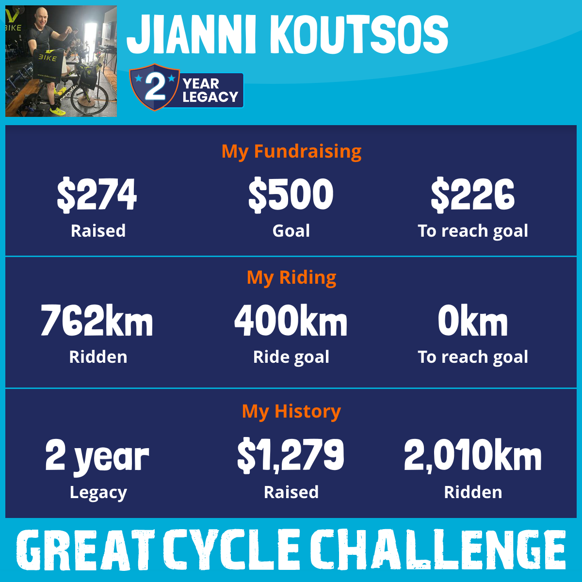 762 km Ridden$274 Raised2025