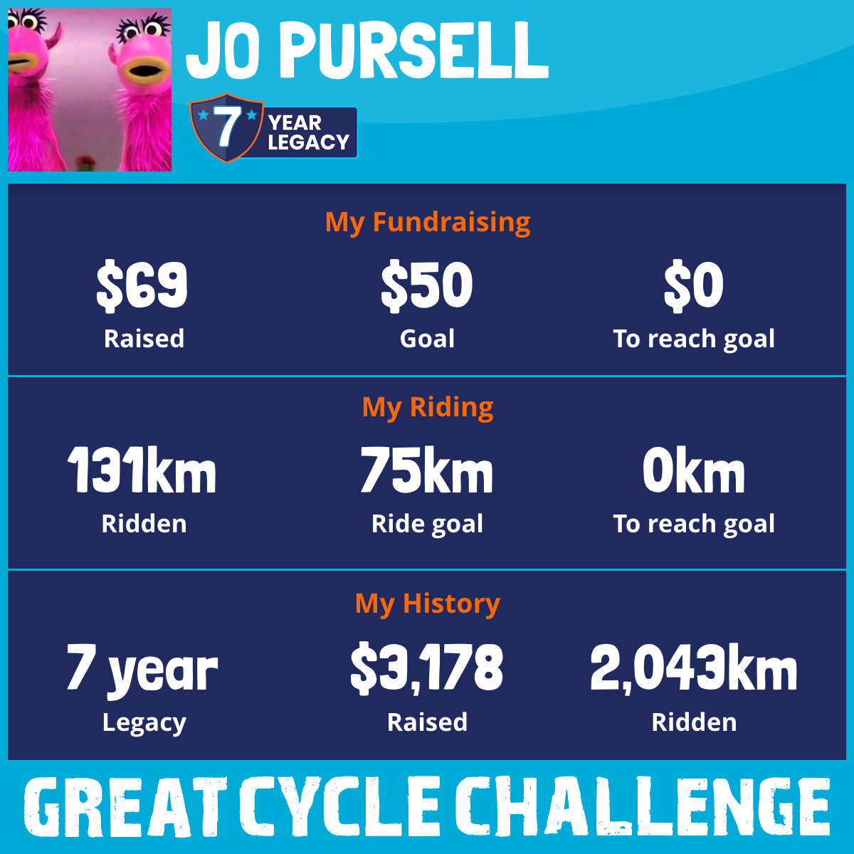 And so I am riding and raising funds to support the Children's Medical Research Institute to continue their work into the prevention, diagnosis, treatment and finding a cure for childhood cancer.