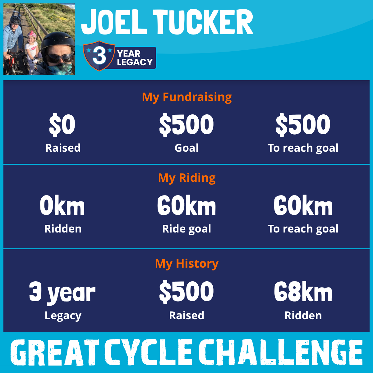 68 km Ridden$500 Raised2020