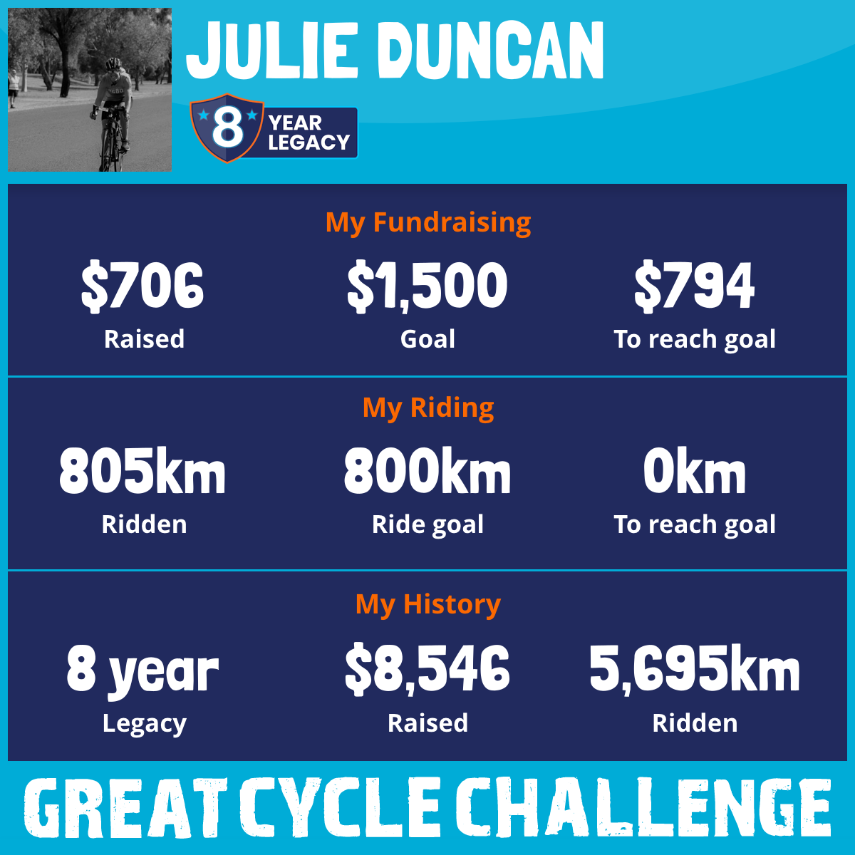 805 km Ridden$706 Raised2025