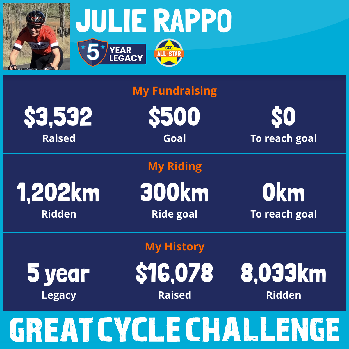 And so I am riding and raising funds to support the Children's Medical Research Institute to continue their work into the prevention, diagnosis, treatment and finding a cure for childhood cancer.