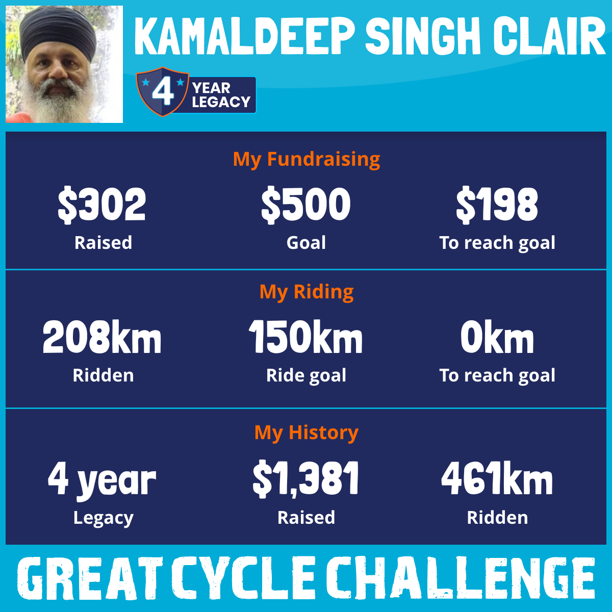 208 km Ridden$302 Raised2025