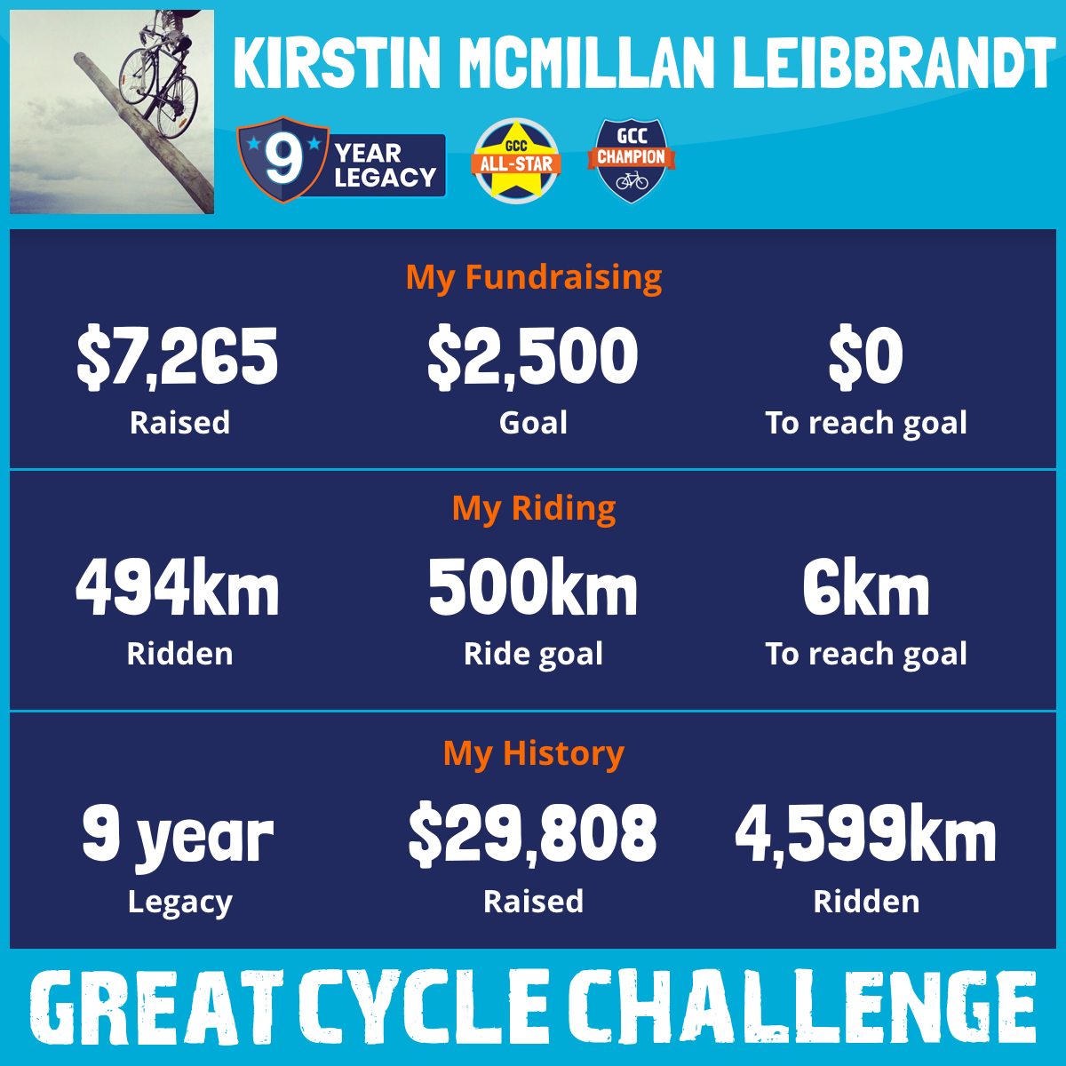 494 km Ridden$7,265 Raised2026