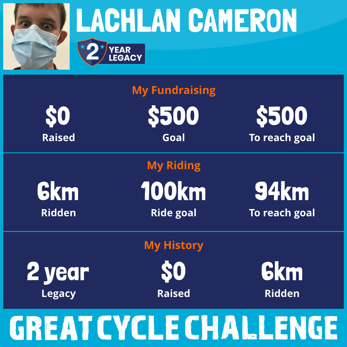 I am riding 100 km in memory of James Mcmurray. Please sponsor me and support my challenge to fight kids' cancer and save little lives.