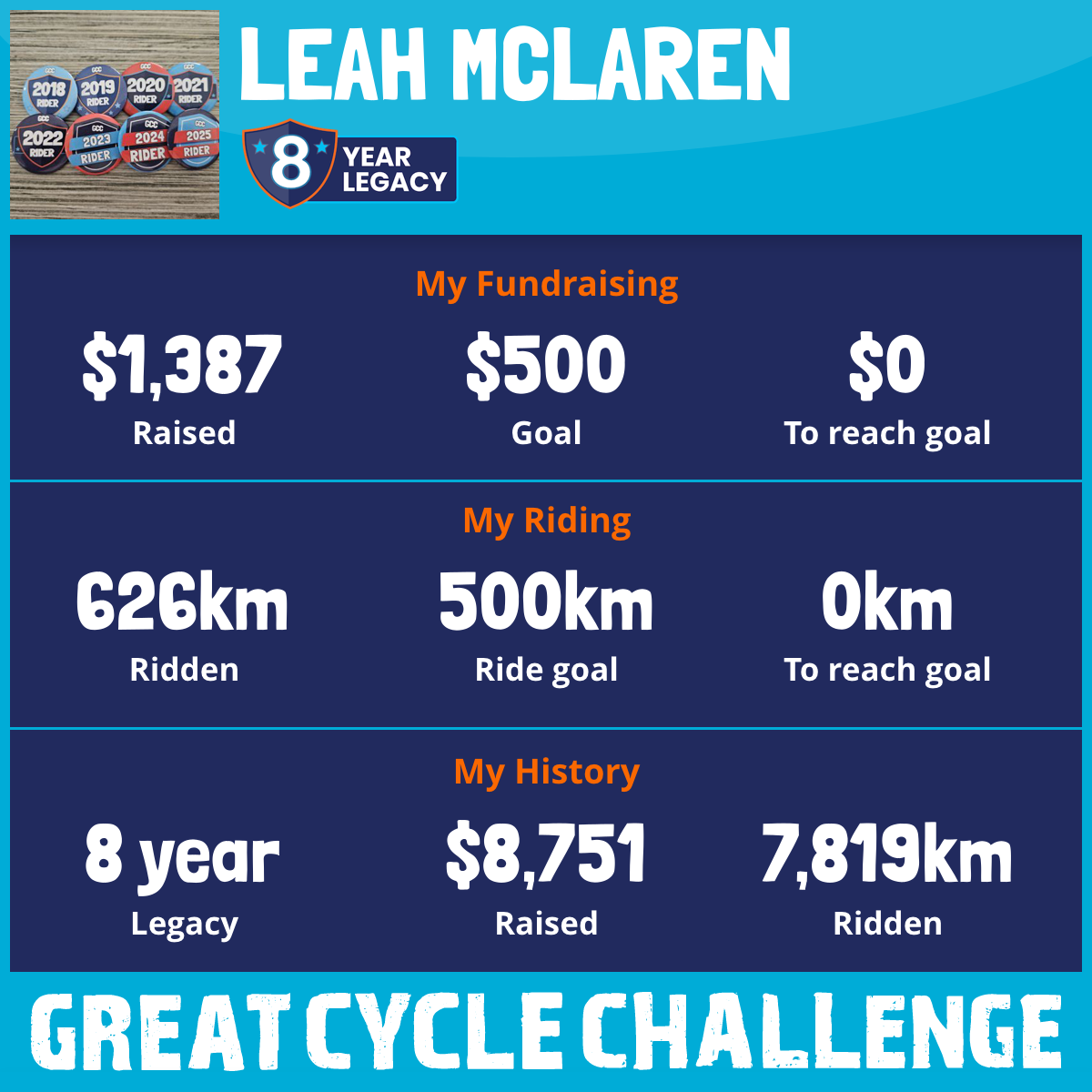 And so I am riding and raising funds to support the Children's Medical Research Institute to continue their work into the prevention, diagnosis, treatment and finding a cure for childhood cancer.