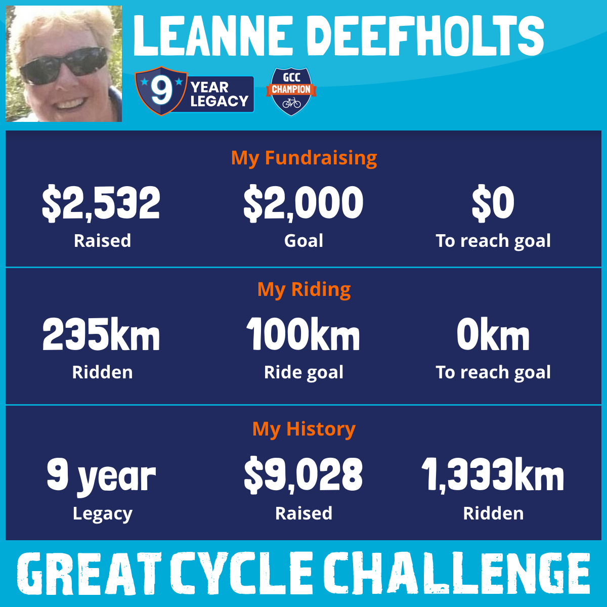 And so I am riding and raising funds to support the Children's Medical Research Institute to continue their work into the prevention, diagnosis, treatment and finding a cure for childhood cancer.