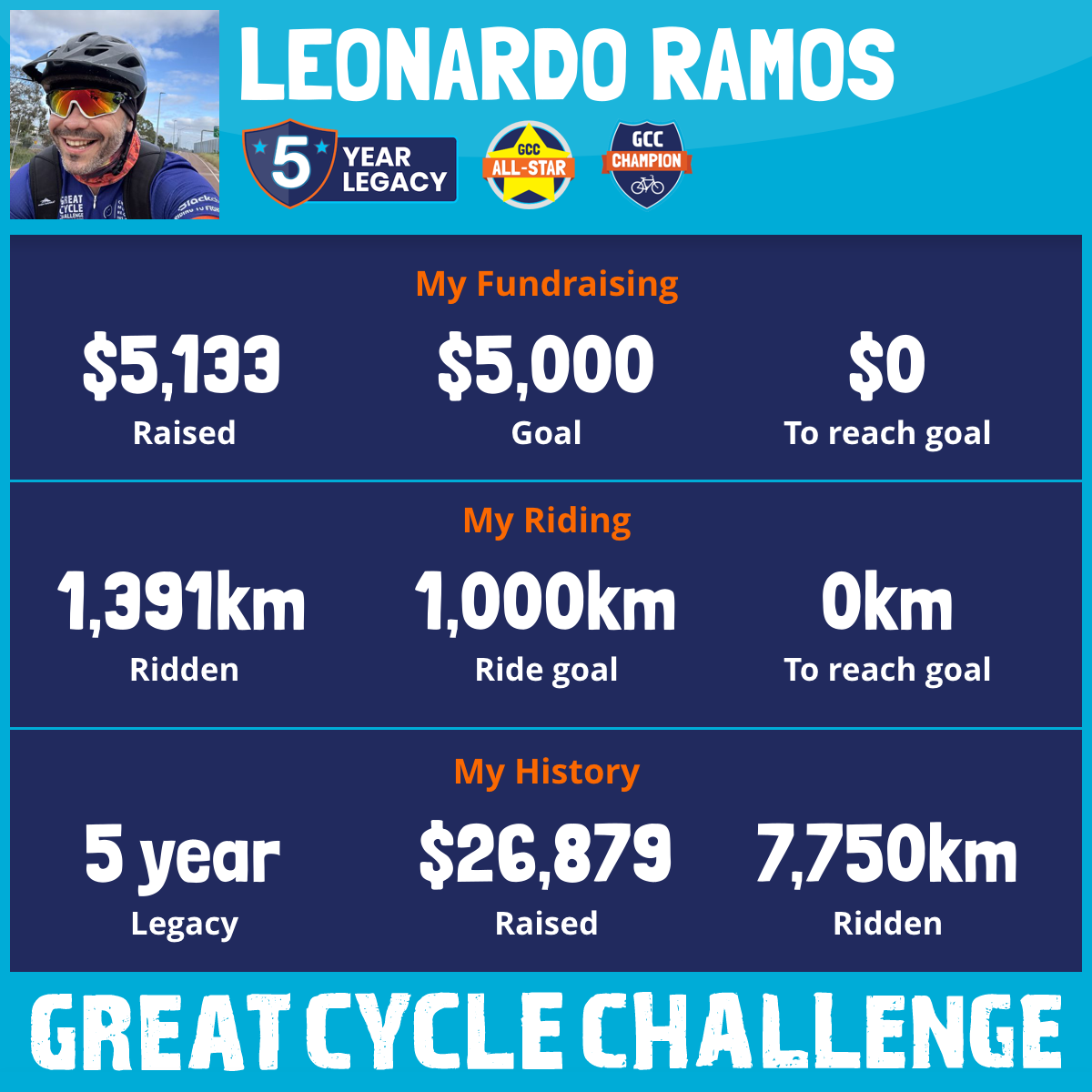 1,391 km Ridden$5,081 Raised2025