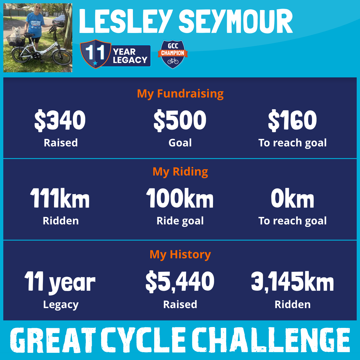 This October, will be the 9th year I have taken part in the Great Cycle Challenge to fight kids' cancer!
