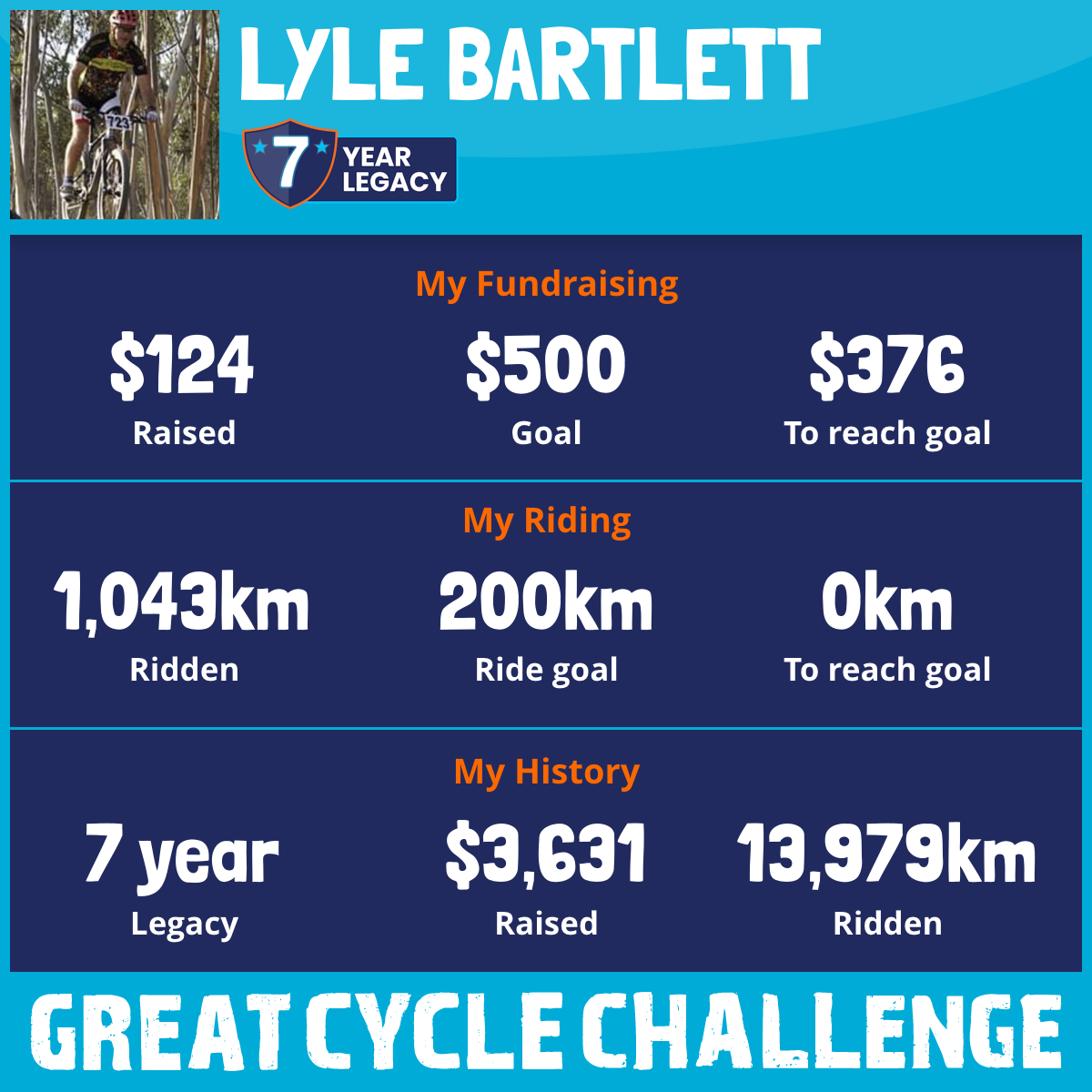 1,043 km Ridden$124 Raised2025