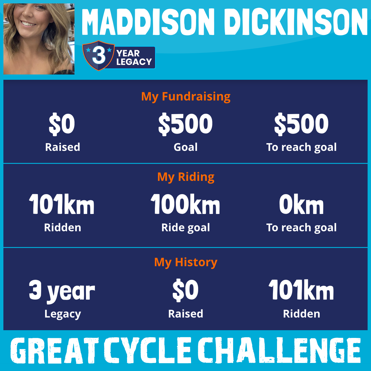 And so I am riding and raising funds to support the Children's Medical Research Institute to continue their work into the prevention, diagnosis, treatment and finding a cure for childhood cancer.