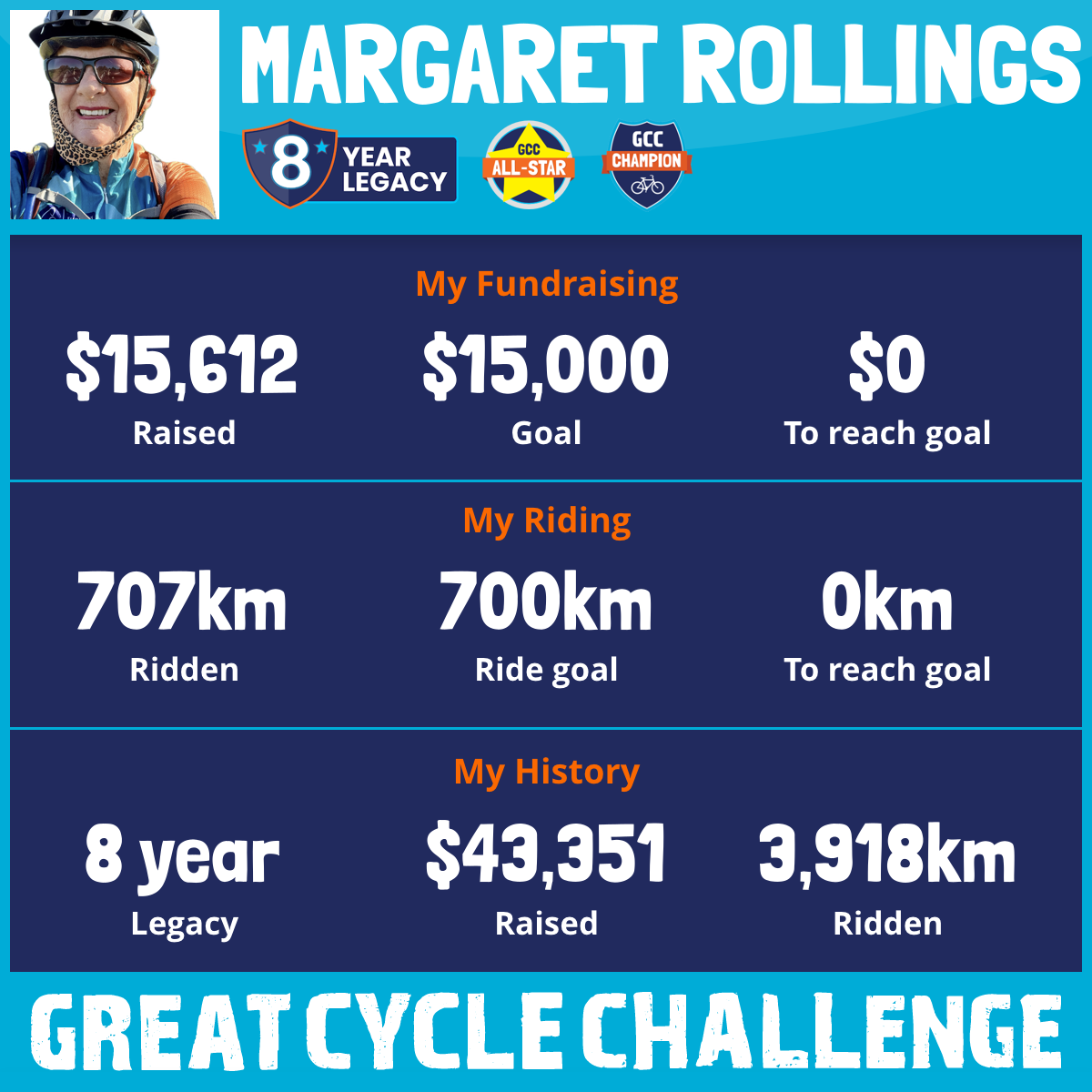 707 km Ridden$15,612 Raised2026