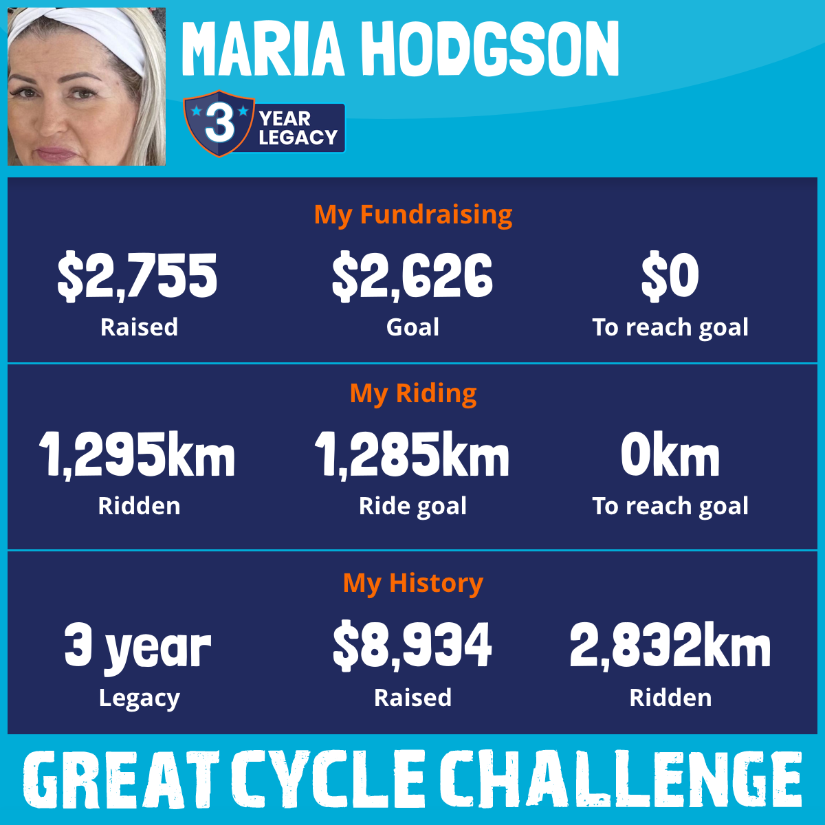 Last year I I lost my mum to dementia whilst cycling 1009kms last year and decided then that i would dedicate this years ride to mum by cycling the number of months she blessed this earth which is 1033, also an old family friend lost his son, Dante to brain cancer so I thought it important to cycle the months he graced this earth also (252) which is why this year I will cycle 1285kms to celebrate the memory of two beautiful souls.