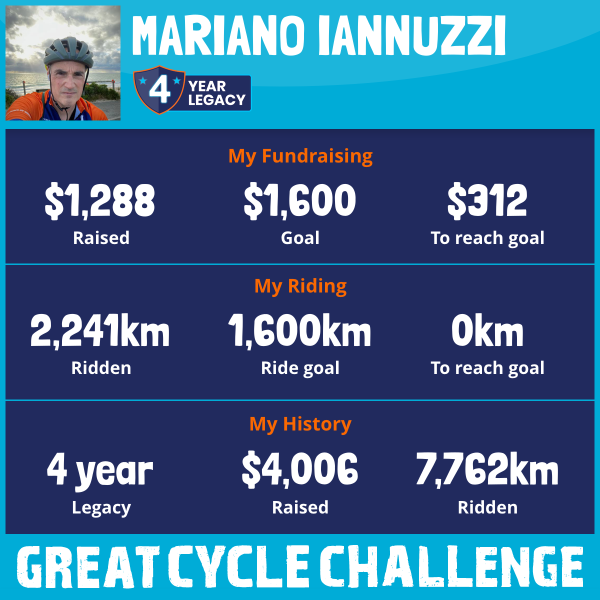 2,241 km Ridden$1,288 Raised2025