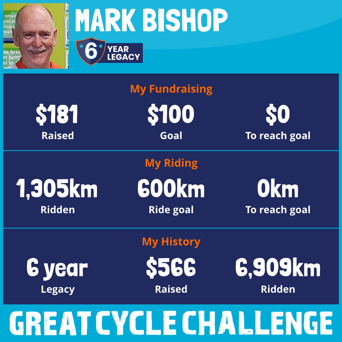 1,305 km Ridden$181 Raised2025