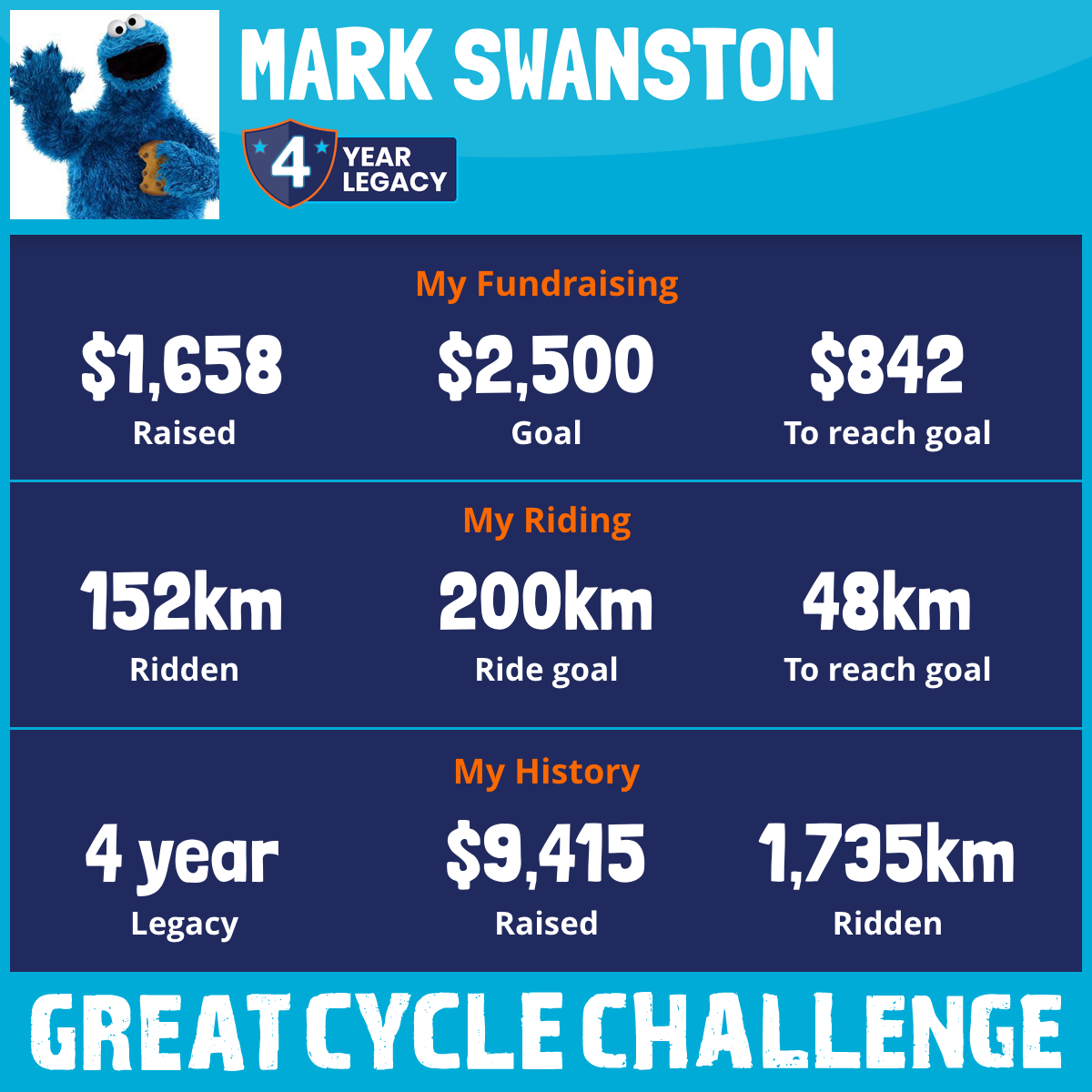 152 km Ridden$1,658 Raised2026