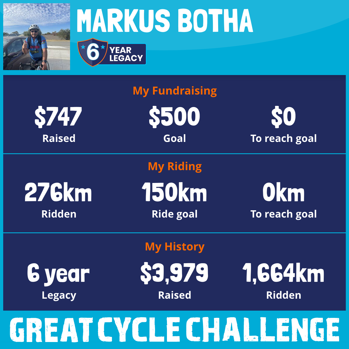 276 km Ridden$747 Raised2026