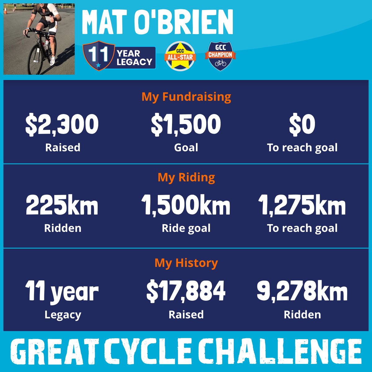 And so I am riding and raising funds to support the Children's Medical Research Institute to continue their work into the prevention, diagnosis, treatment and finding a cure for childhood cancer.