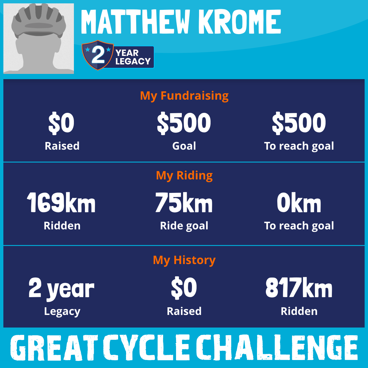 And so I am riding and raising funds to support the Children's Medical Research Institute to continue their work into the prevention, diagnosis, treatment and finding a cure for childhood cancer.