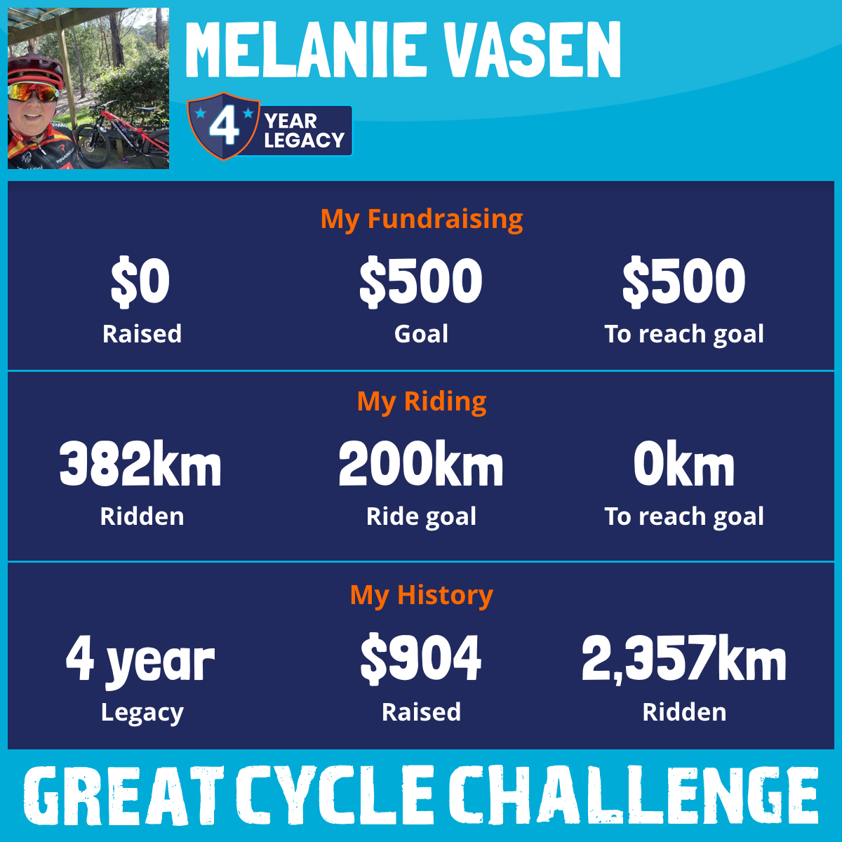 699 km Ridden$400 Raised2023