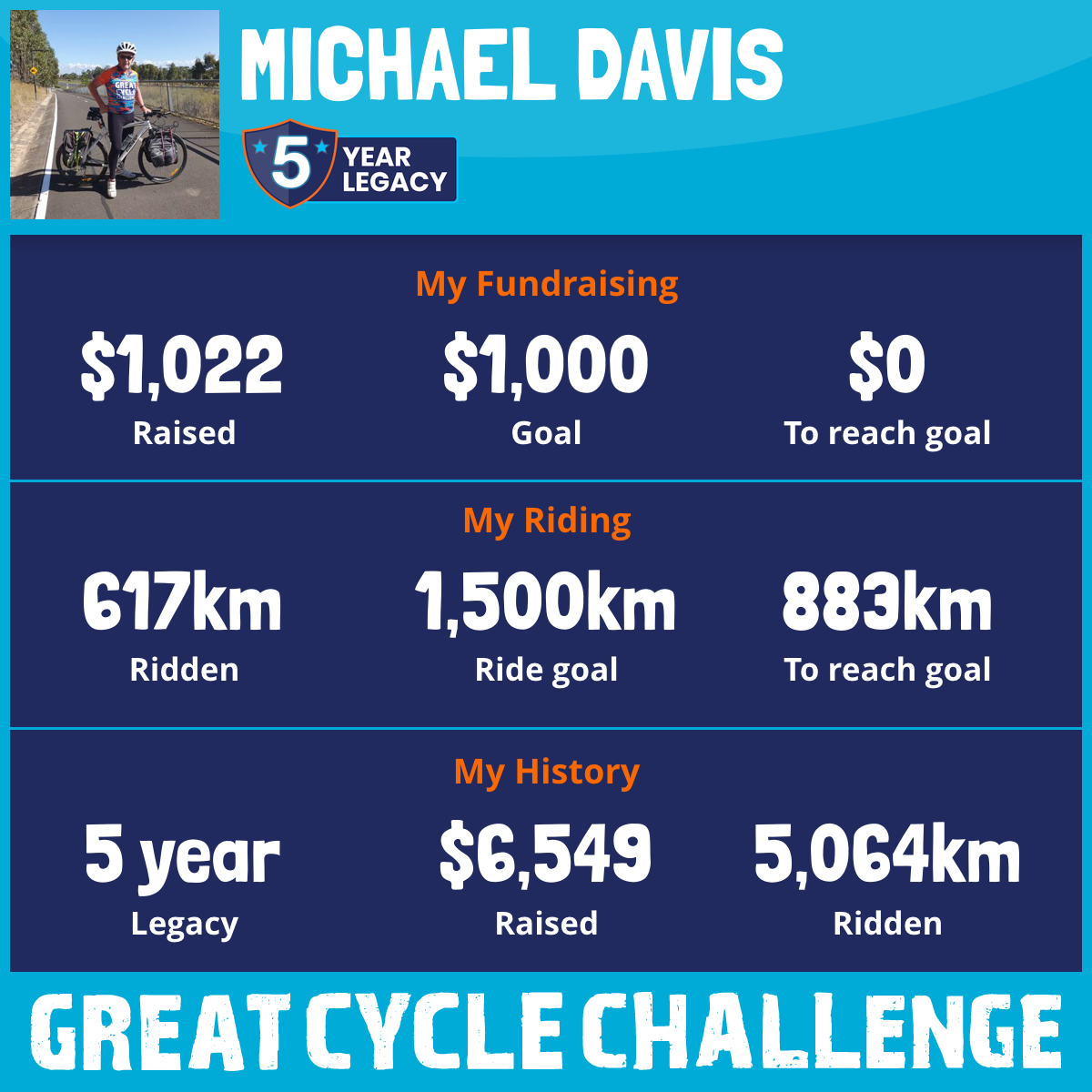 617 km Ridden$1,022 Raised2025