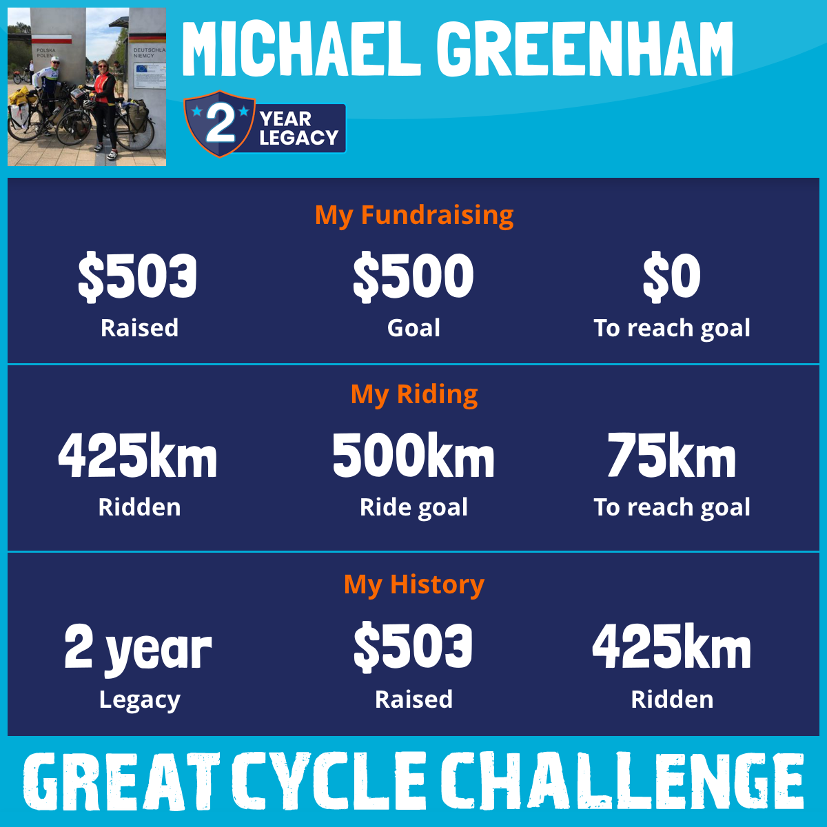 “What a great cause Mick ! Enjoy the ride and stay safe on the roads.”