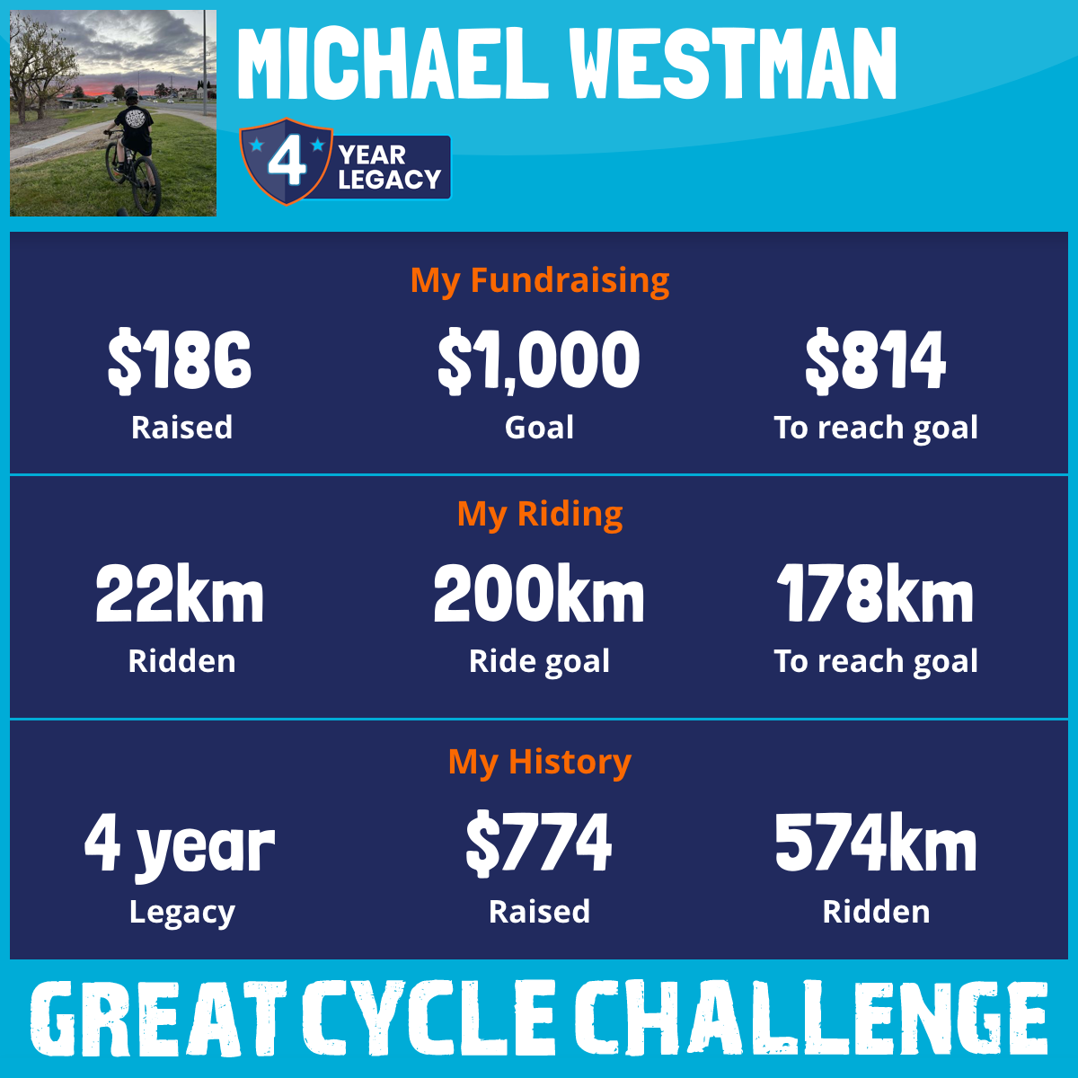And so I am riding and raising funds to support the Children's Medical Research Institute to continue their work into the prevention, diagnosis, treatment and finding a cure for childhood cancer.