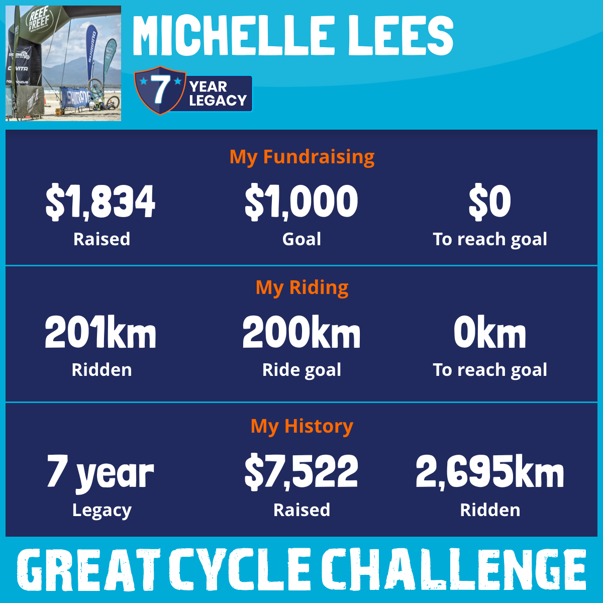 201 km Ridden$1,834 Raised2026