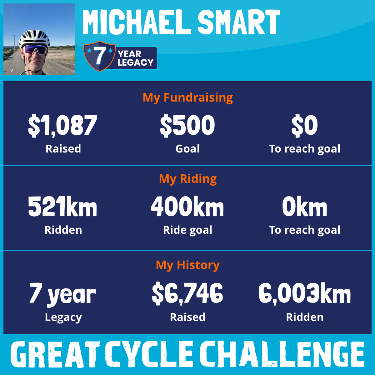 I am riding 400 km in memory of my dad, Neil Smart. Please sponsor me and support my challenge to fight kids' cancer and save little lives.