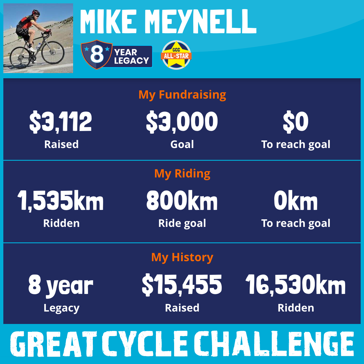 1,535 km Ridden$3,112 Raised2025