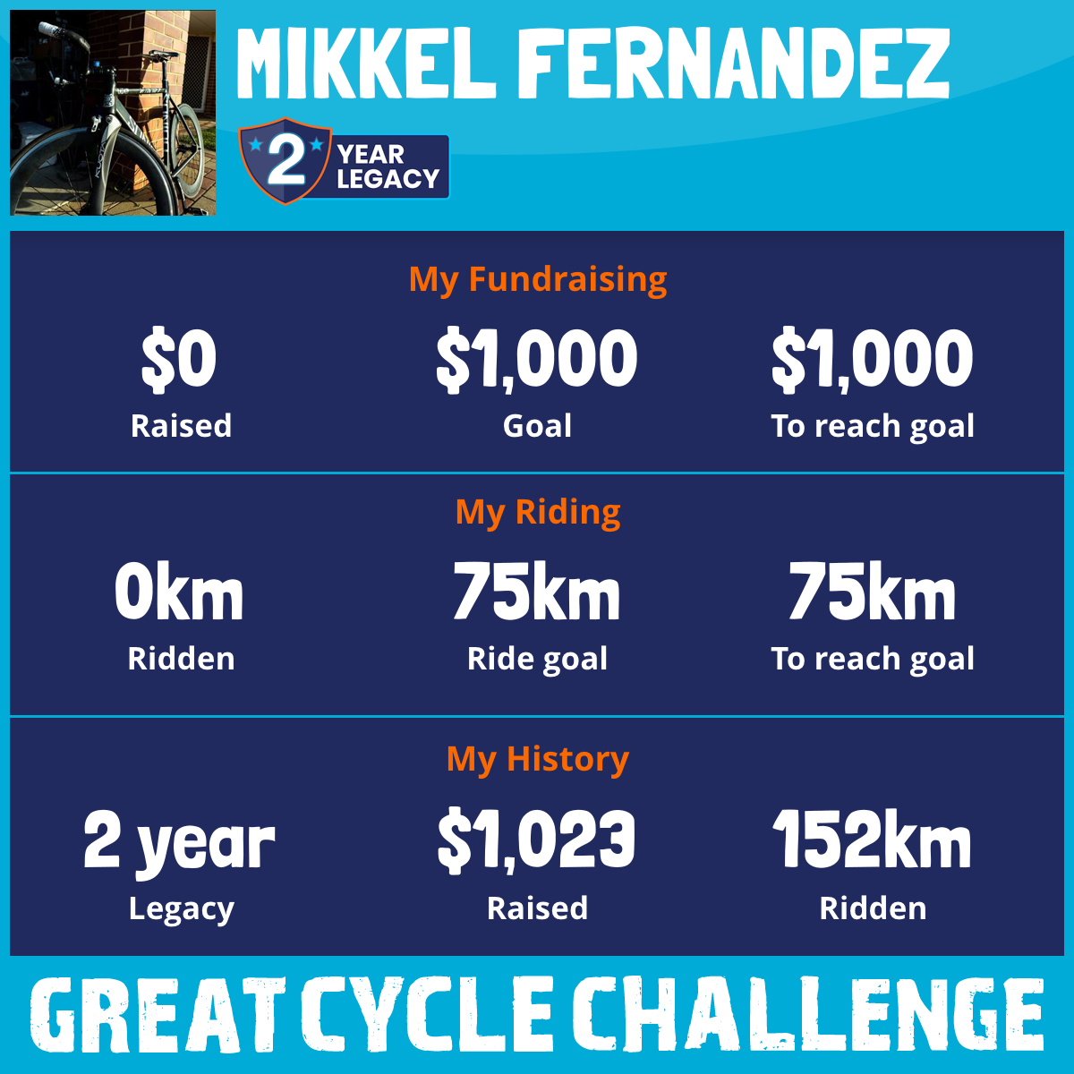 152 km Ridden$1,023 Raised2022
