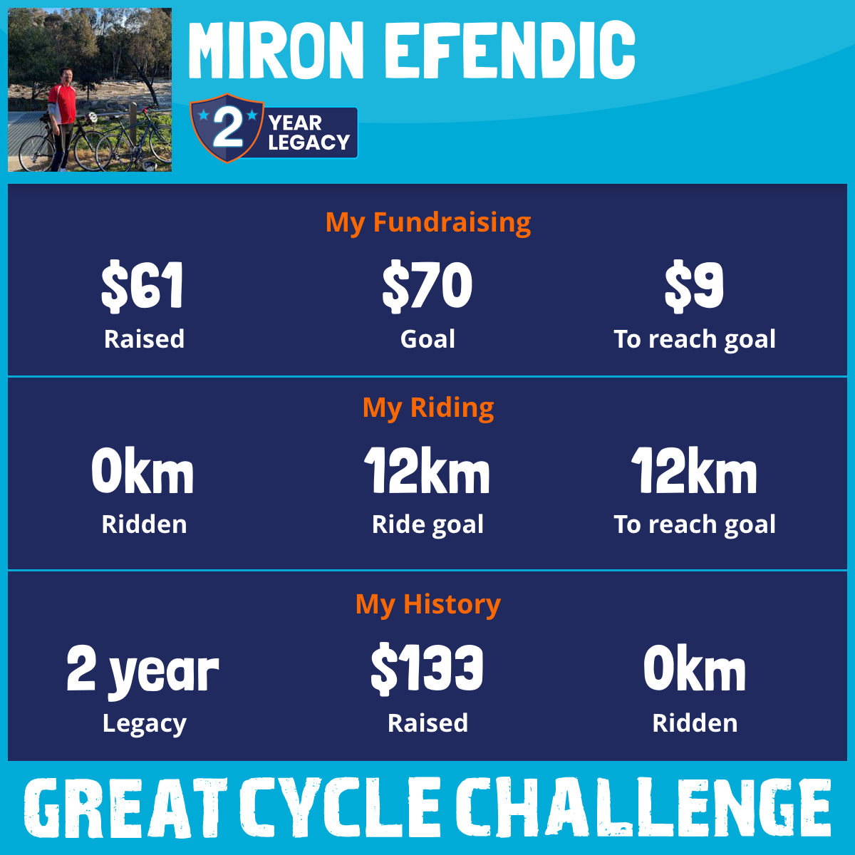 And so I am riding and raising funds to support the Children's Medical Research Institute to continue their work into the prevention, diagnosis, treatment and finding a cure for childhood cancer.