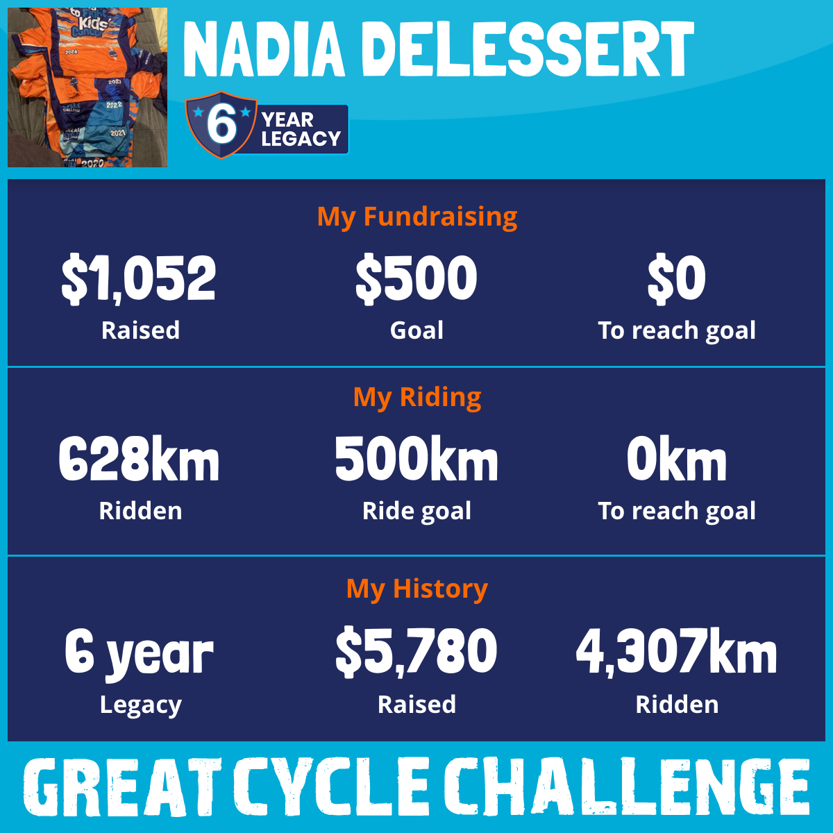 And so I am riding and raising funds to support the Children's Medical Research Institute to continue their work into the prevention, diagnosis, treatment and finding a cure for childhood cancer.