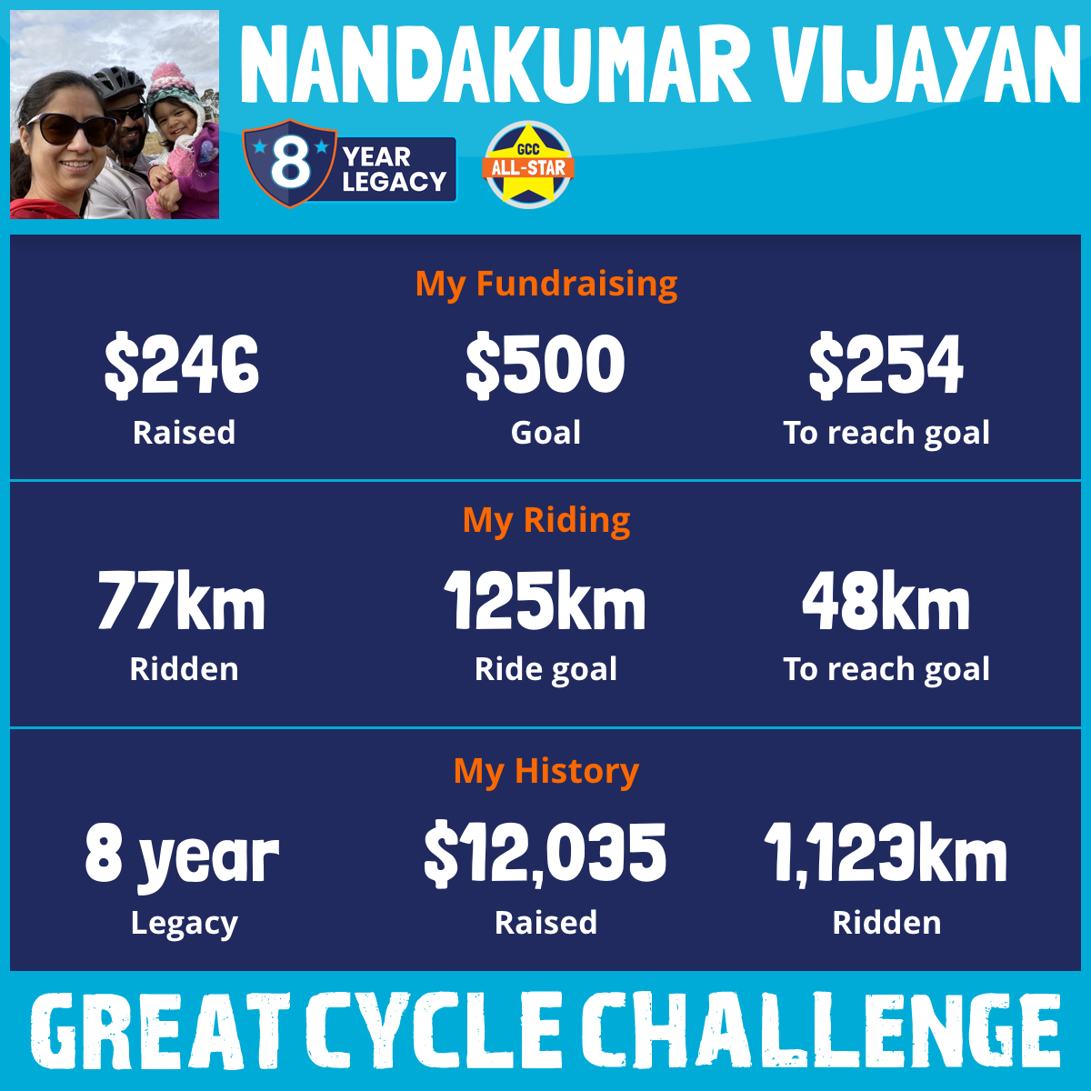 And so I am riding and raising funds to support the Children's Medical Research Institute to continue their work into the prevention, diagnosis, treatment and finding a cure for childhood cancer.