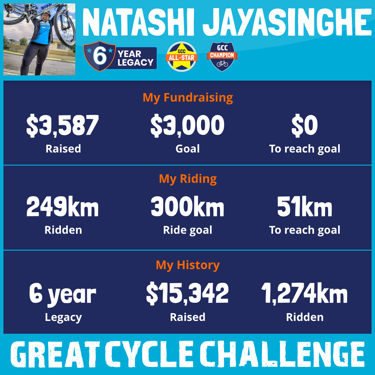 249 km Ridden$3,587 Raised2025
