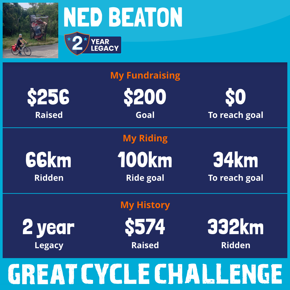 66 km Ridden$256 Raised2025