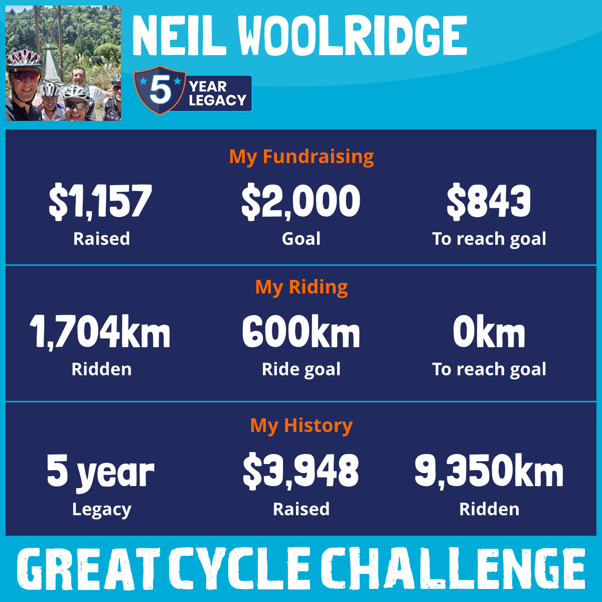 1,704 km Ridden$1,157 Raised2025