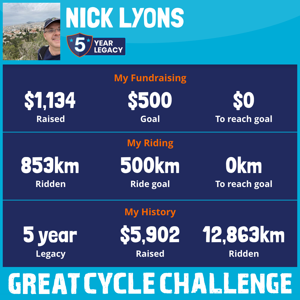 3,059 km Ridden$1,473 Raised2023
