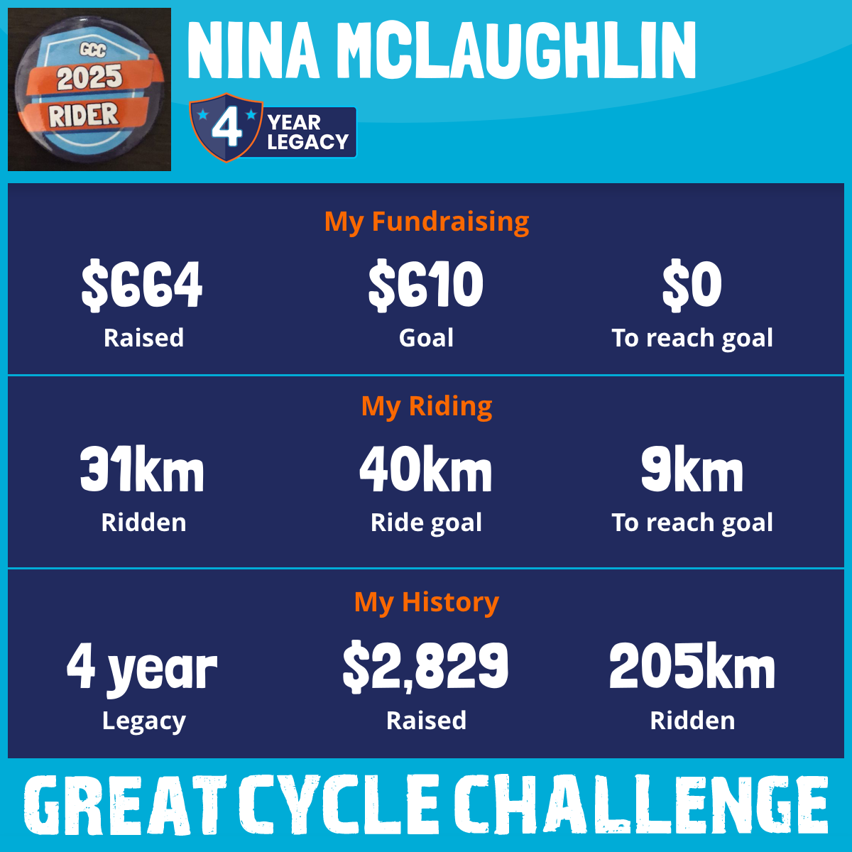 And so I am riding and raising funds to support the Children's Medical Research Institute to continue their work into the prevention, diagnosis, treatment and finding a cure for childhood cancer.