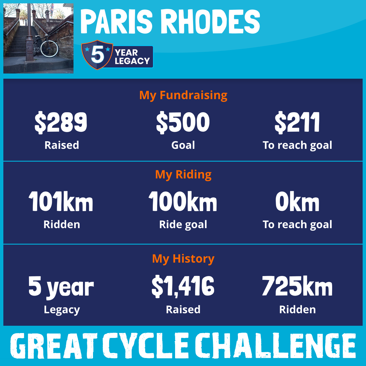 And so I am riding and raising funds to support the Children's Medical Research Institute to continue their work into the prevention, diagnosis, treatment and finding a cure for childhood cancer.