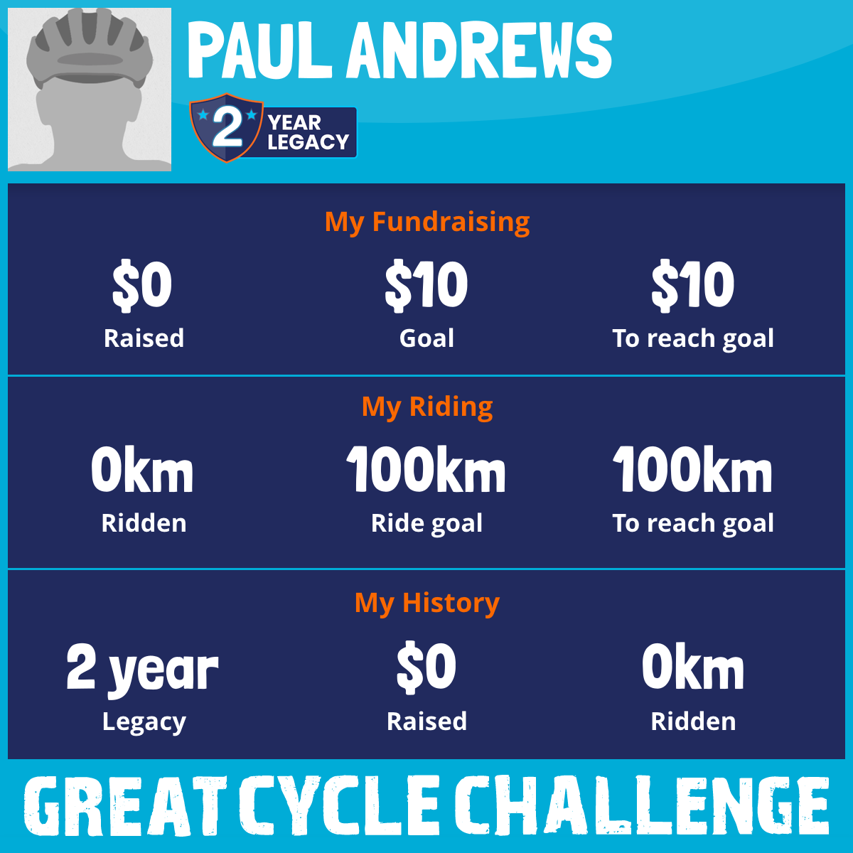 I've Ridden 0.0 km My goal is 100 km
