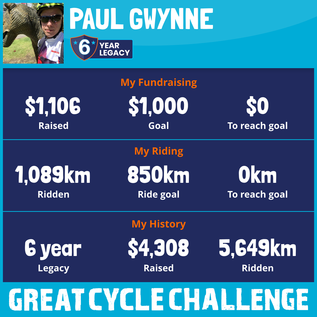 1,089 km Ridden$1,106 Raised2025