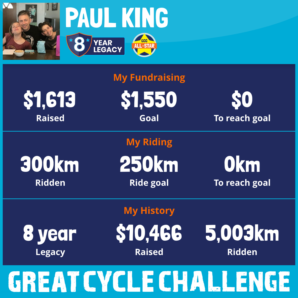300 km Ridden$1,613 Raised2025