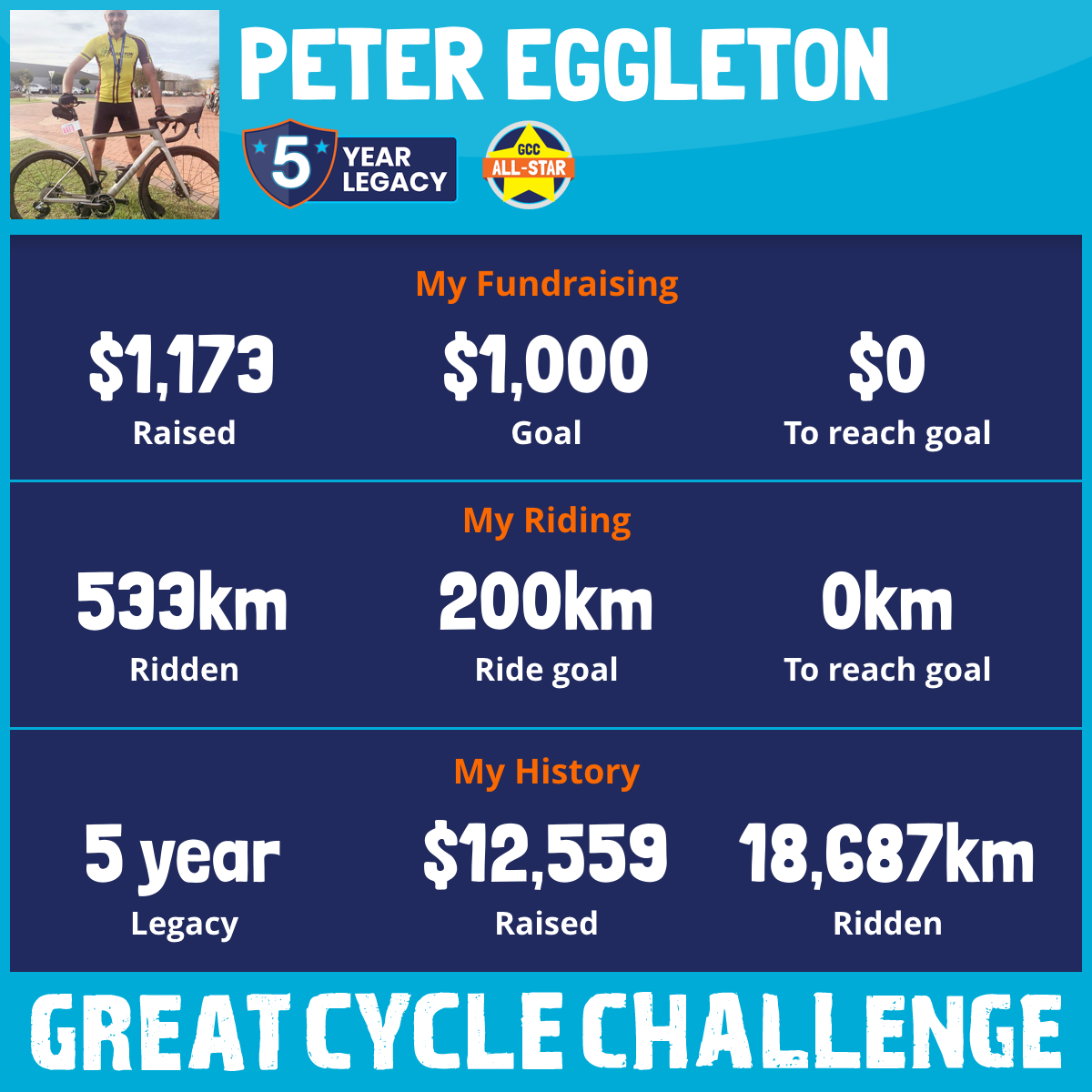 3,564 km Ridden$3,539 Raised2023