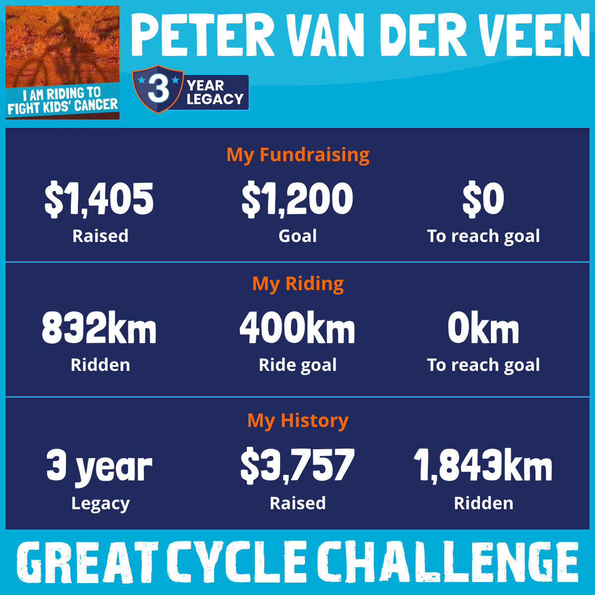 832 km Ridden$1,405 Raised2026
