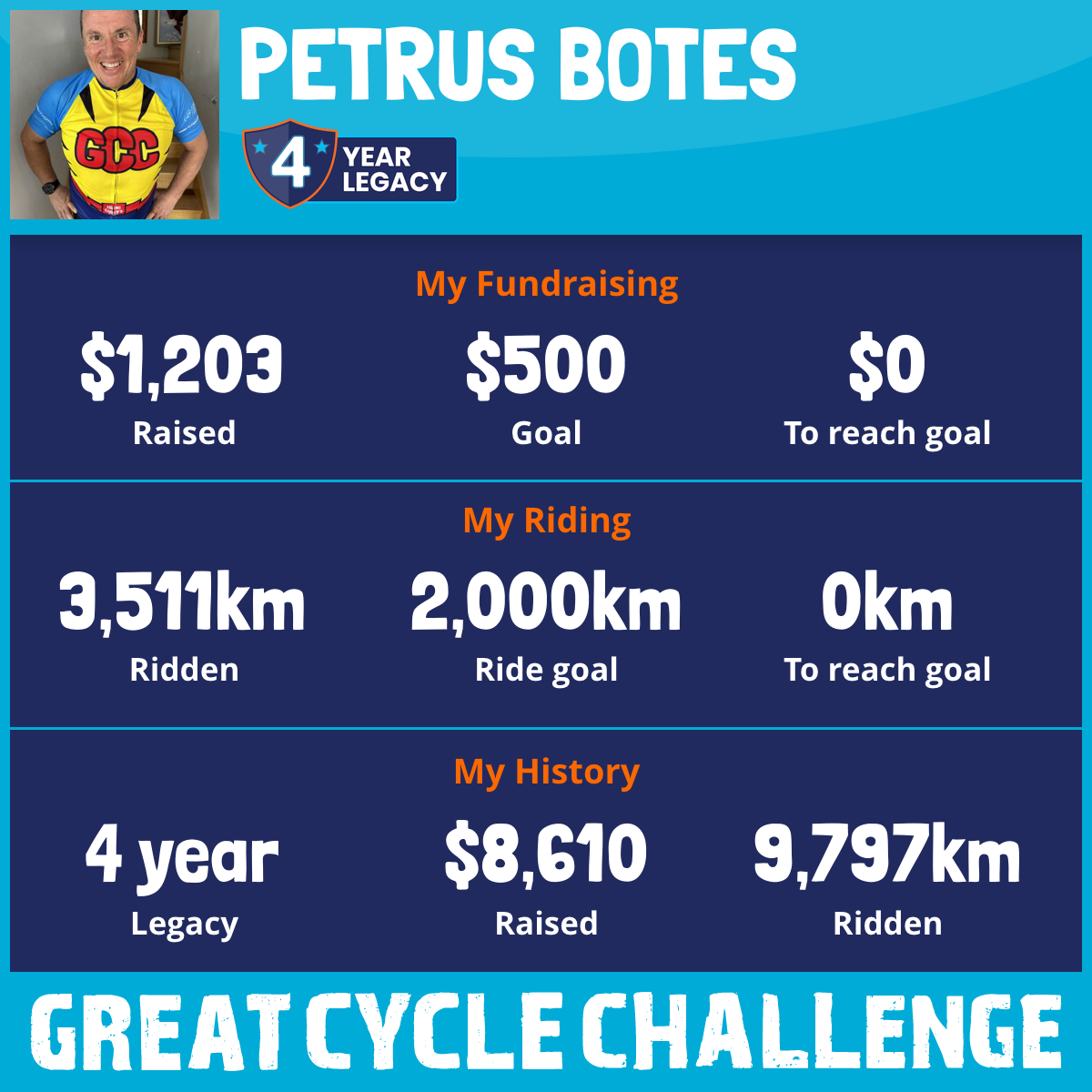 And so I am riding and raising funds to support the Children's Medical Research Institute to continue their work into the prevention, diagnosis, treatment and finding a cure for childhood cancer.