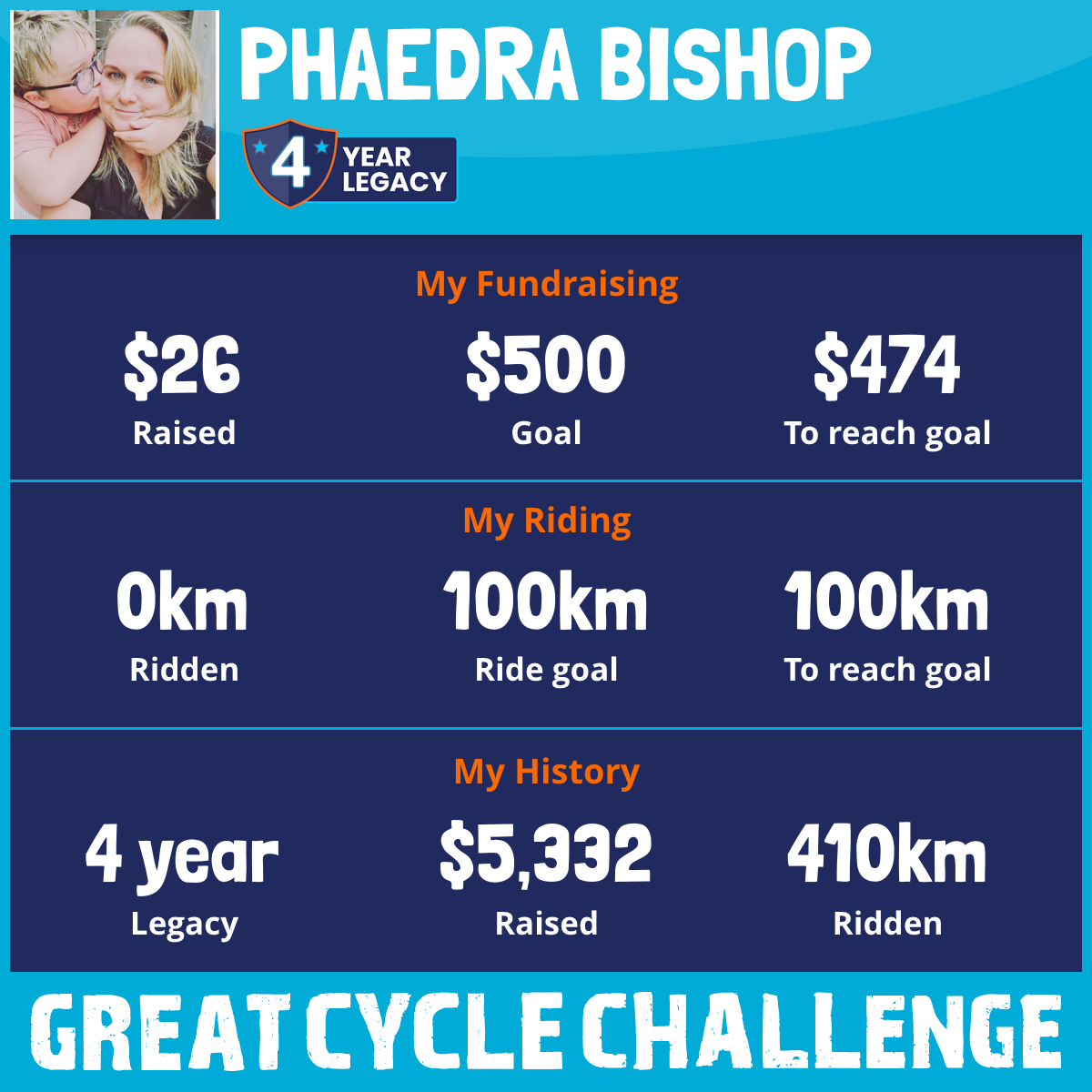 And so I am riding and raising funds to support the Children's Medical Research Institute to continue their work into the prevention, diagnosis, treatment and finding a cure for childhood cancer.